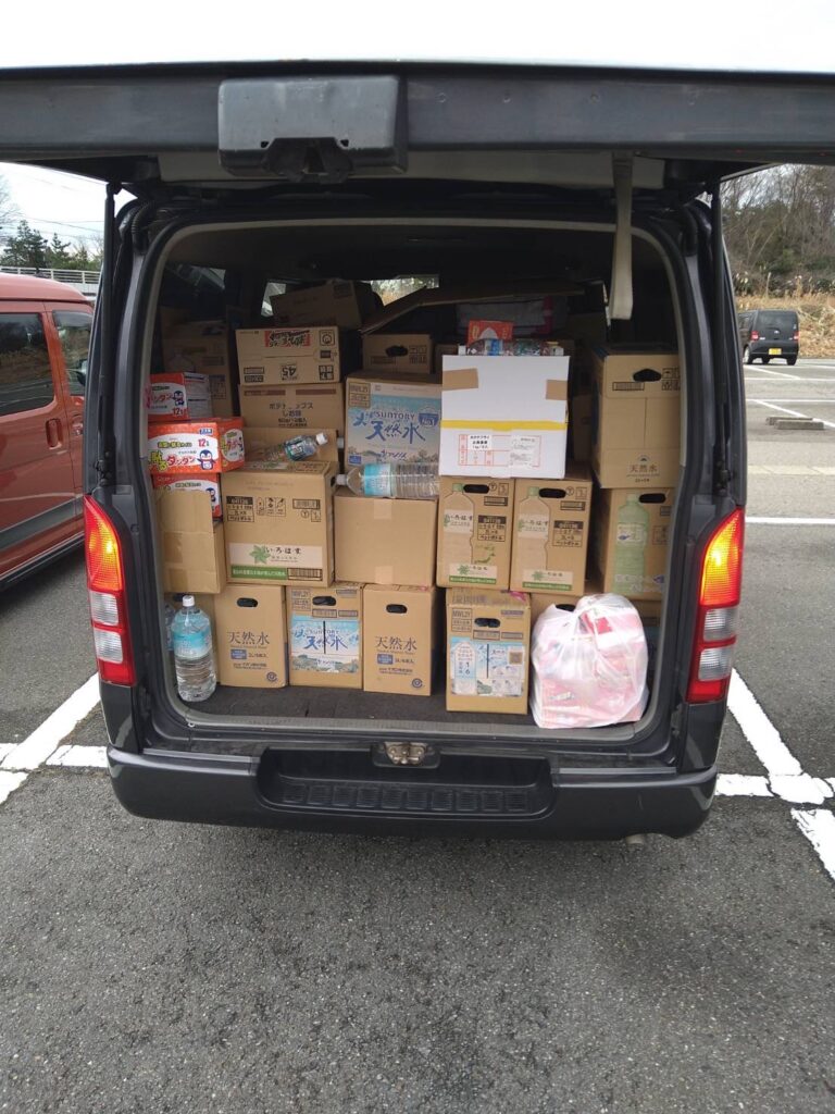 七尾市地域の病院や小学校に支援物資を届ける。