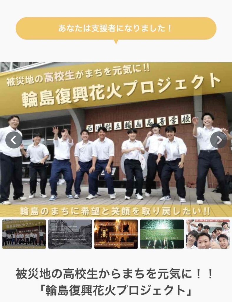 「被災地の高校生からまちを元気に!!「輪島復興花火プロジェクト」」があり、この日は高校生たちが行ったクラウドファンディングで集めた資金で花火もありました。
